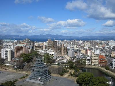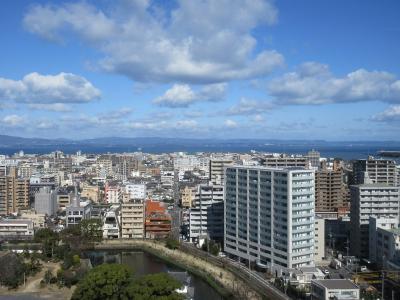 大分県庁近くにある大分城を訪問しました。一部櫓の修復工事をしていて、若干歩き回れるルートが限られたのが残念でしたが、水堀にそって立派な石垣が残り、更に何棟かの櫓が現存しており、中々見ごたえのあるお城でした。お堀には鯉の泳ぐ姿まで見えて、街の中心にこうしたお城を持つ大分市民がうらやましく思えました。