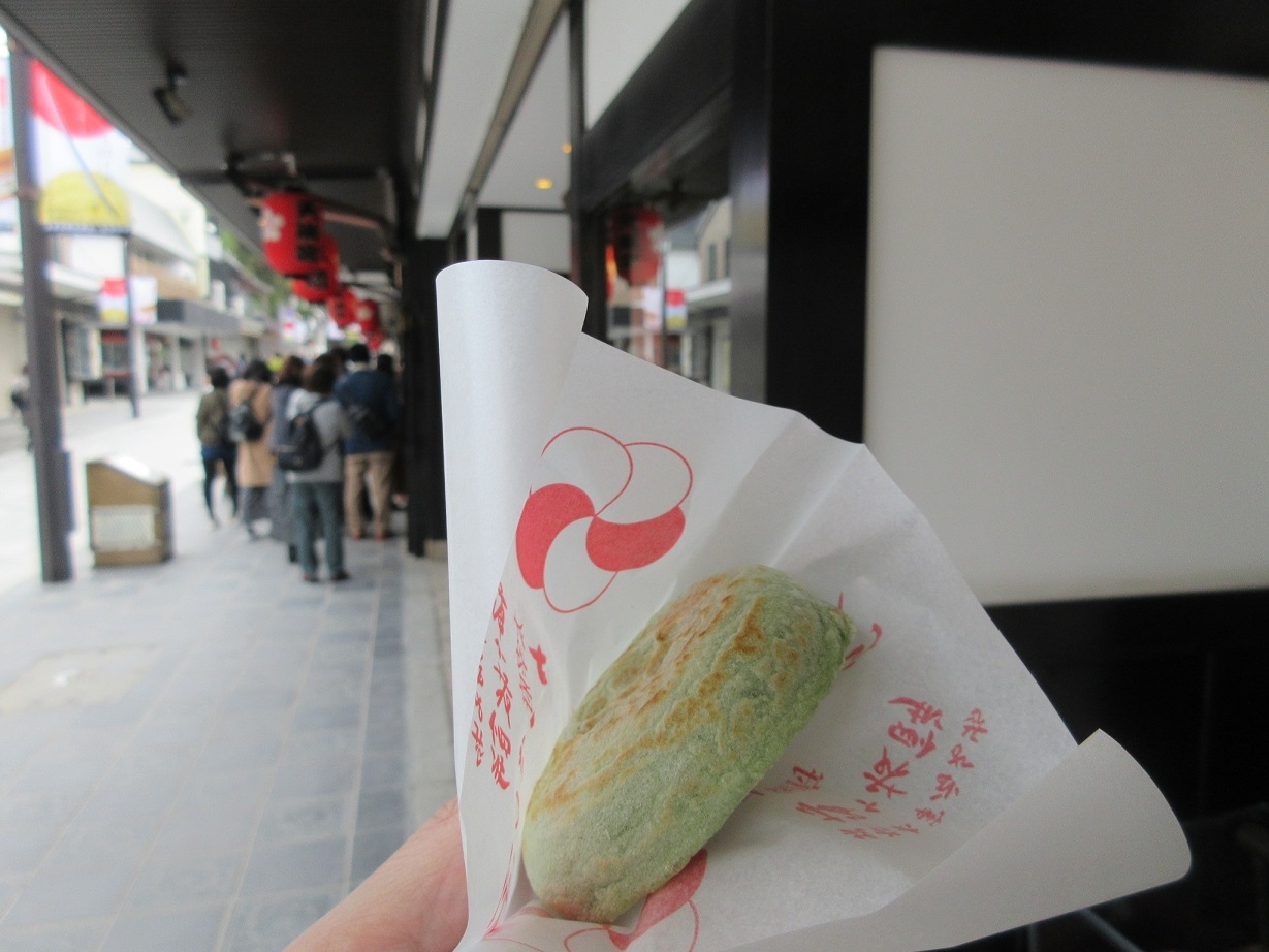太宰府天満宮の参道にある【梅が枝餅】屋さんの一つがこちらです。【梅が枝餅】の食べ比べをしながら参道を散策した際に立ち寄りました。製造工程がすべてガラス越しに見ることが出来て、みるみる出来上がっていく様子感嘆しながら見ていると、すぐに私の順番になりました。一つが130円で、もちもちの食感は絶品でした。