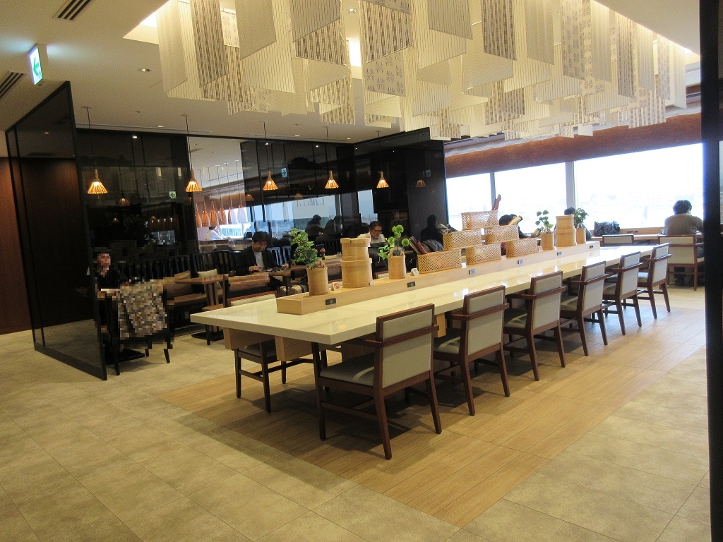 福岡空港を利用した際、改装なったJALラウンジを利用しました。手荷物検査場も特別ゲートが利用できて、並ばないで制限エリアに入ることが出来ました。ラウンジは座席数も豊富で、一人用のカウンター席もありますし、充電用ソケットなども完備されていてノートパソコンを広げている方も大勢見かけました。
