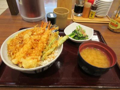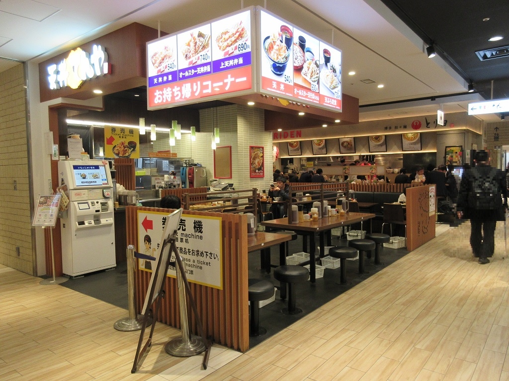 博多駅のKITTEの中にある【天丼てんや】で遅めにランチを頂きました。店舗はそれほど広くないですが、一人での利用でしたので、それほど気になりませんでした。天丼とほうれん草のお浸しをオーダー、丁度よい甘さのタレで、美味しく海老天ぷらなど頂くことが出来ました。値段も値ごろですし、気軽にできるお店です。