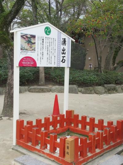 【筥崎宮】の境内を散策していた際、楼門に向かって右手の一角に赤い柵で囲まれた場所があり、若い女性が何人か集まっていました。なんだろうと興味をもって近づいて見たところ、運気の上がるパワースポットとのこと。地面から小さな石が少し顔を覗かしていました。パワーを頂くため、女性らも小さな石に向かって手をかざしていました。