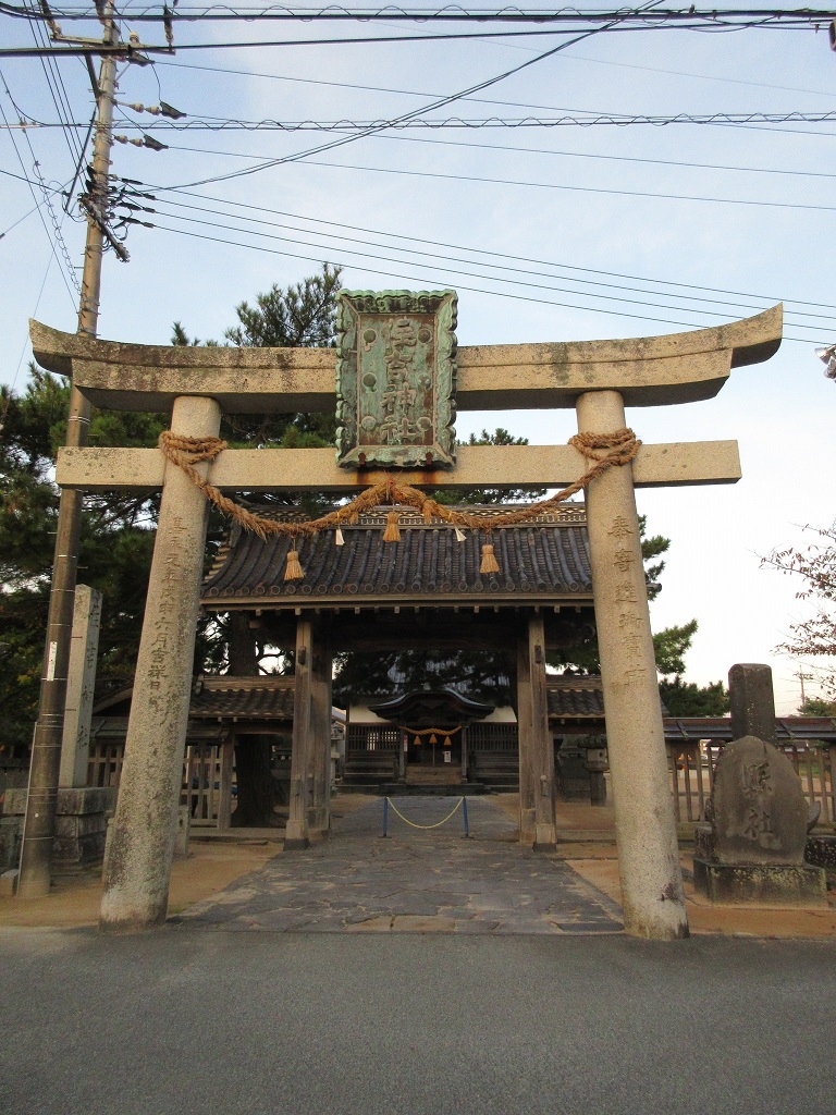 大きな石の鳥居には大きすぎる位の青銅の扁額が掲げられていました。