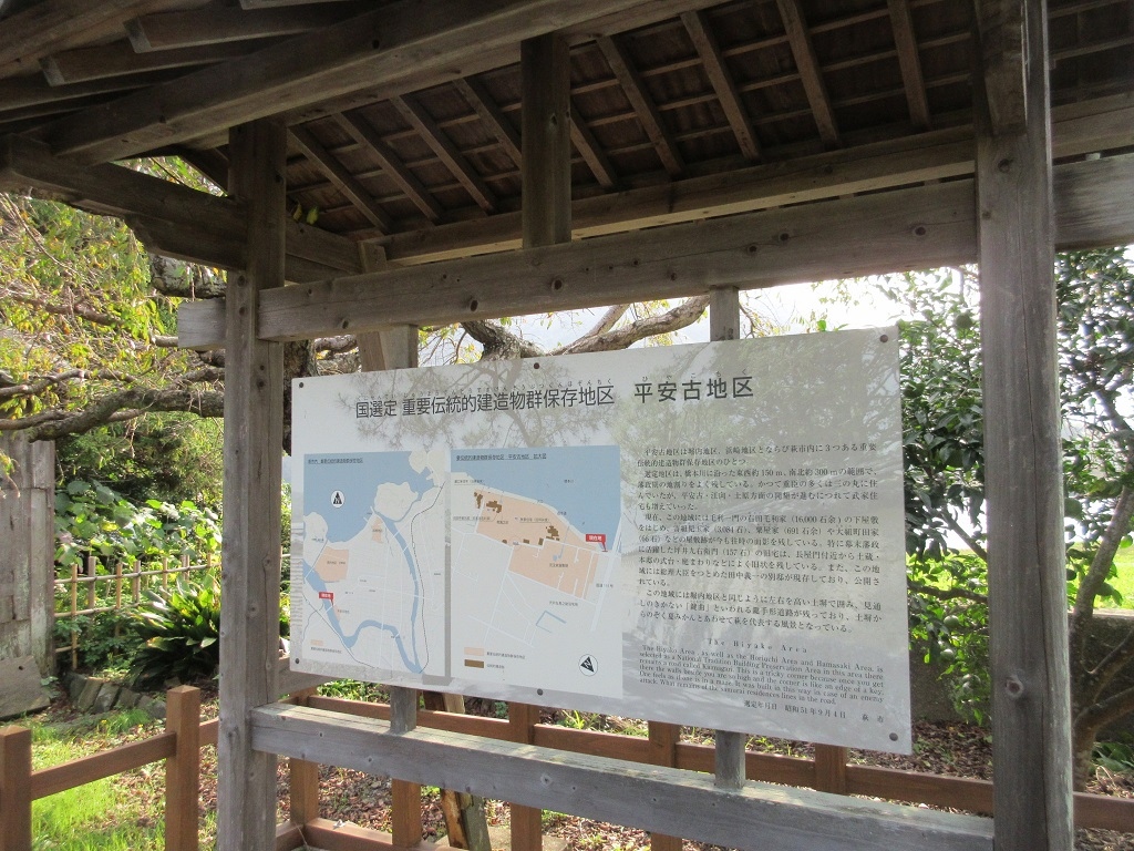 萩の城下町を訪れた際、堀内地区に続いて橋本川沿いに広がる平安古地区を散策しました。【伝統的建造物群保存地区】とされていて、高い土塀が続く道にそってミカン畑や武家屋敷の跡があって、ほっこりと癒される景観が楽しめました。田中義一の別邸などと併せて観光しました。