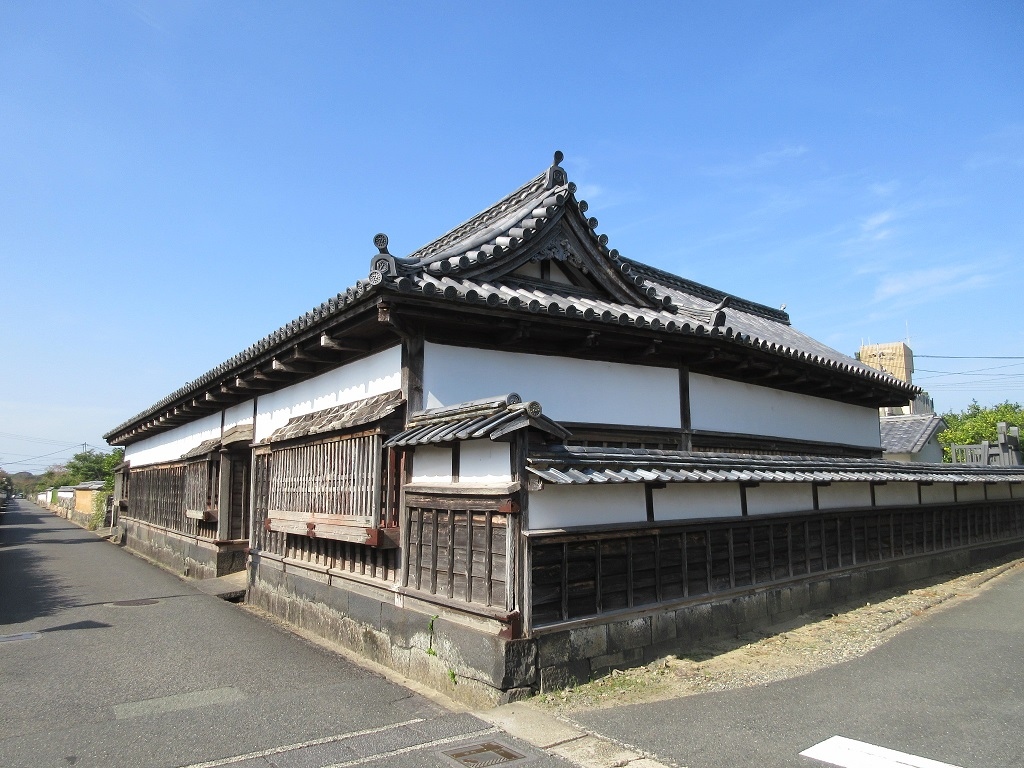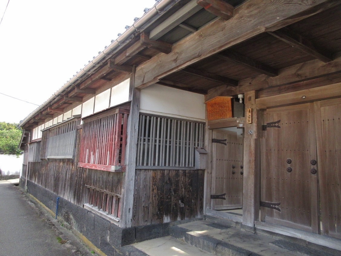 萩を訪れた際に、【浜崎伝統的建造物群保存地区】を散策しました。その風情のある街並みの中でも、とりわけ目立っている町家がこちらです。二階の窓のつくりや、灰色の壁の色、一階の格子窓などから、当時でも立派な建物であったことを伺い知ることが出来ました。萩の漁港からも近いので、そうしたニーズに合わせて船具などを扱っていた有力な商家だったようです。
