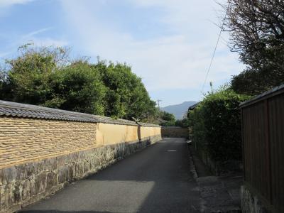 高い土塀が続く道にそってミカン畑や武家屋敷の跡が続きます。