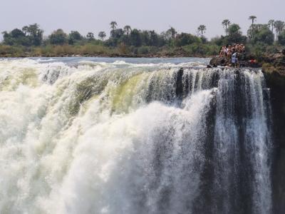 ザンベジ川の水中を歩いて渡り、9:10頃デビルズプールに到着。(カメラ...