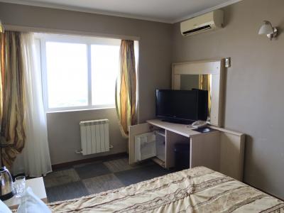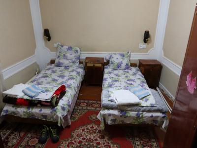 建物や施設はやや古く、客室はツインでほどよい広さ。