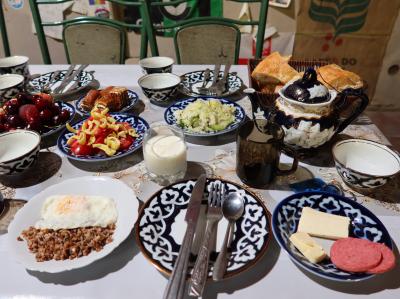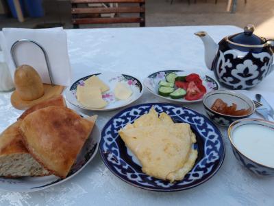 朝食はウズベキスタンの一般的な朝食といった感じでした。