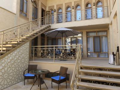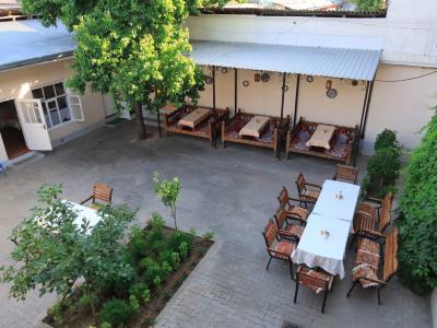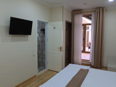 地下鉄チョルスー駅から徒歩12~13分、チョルスー・バザールは徒歩約10分、クカルダシュ・メドレセは徒歩約12分で、観光に不便のない立地にあります。