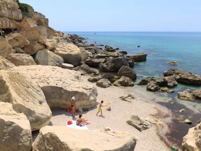 岩場の岸ですが所々に狭い砂浜もあり、プライベートビーチっぽい場所もありました。