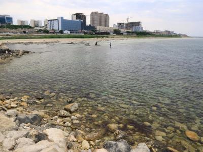 観覧車のある遊園地の南に比較的広い砂浜のビーチがありますが、部分的にヘドロみたいなものが溜まっていました。
