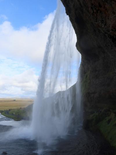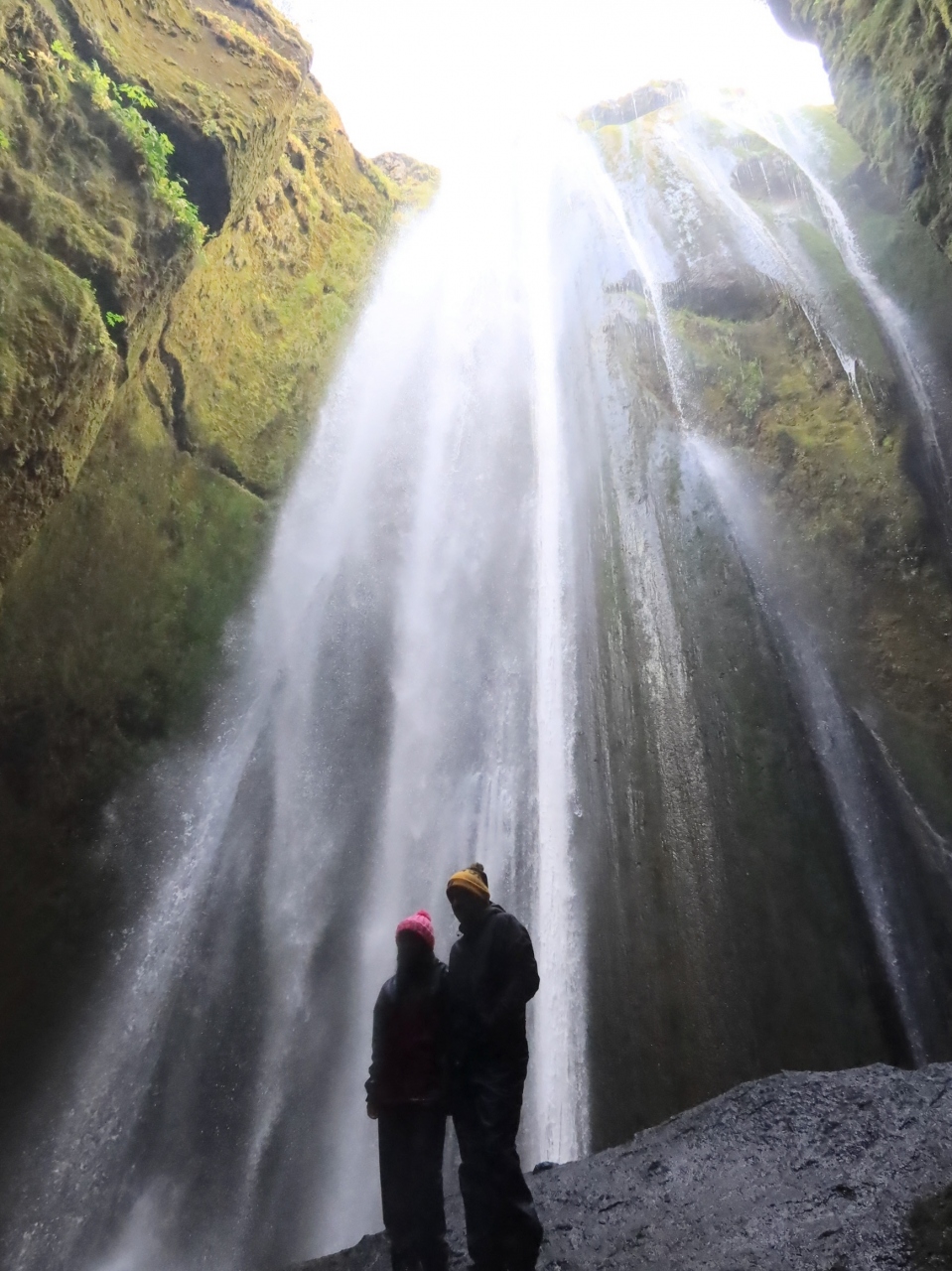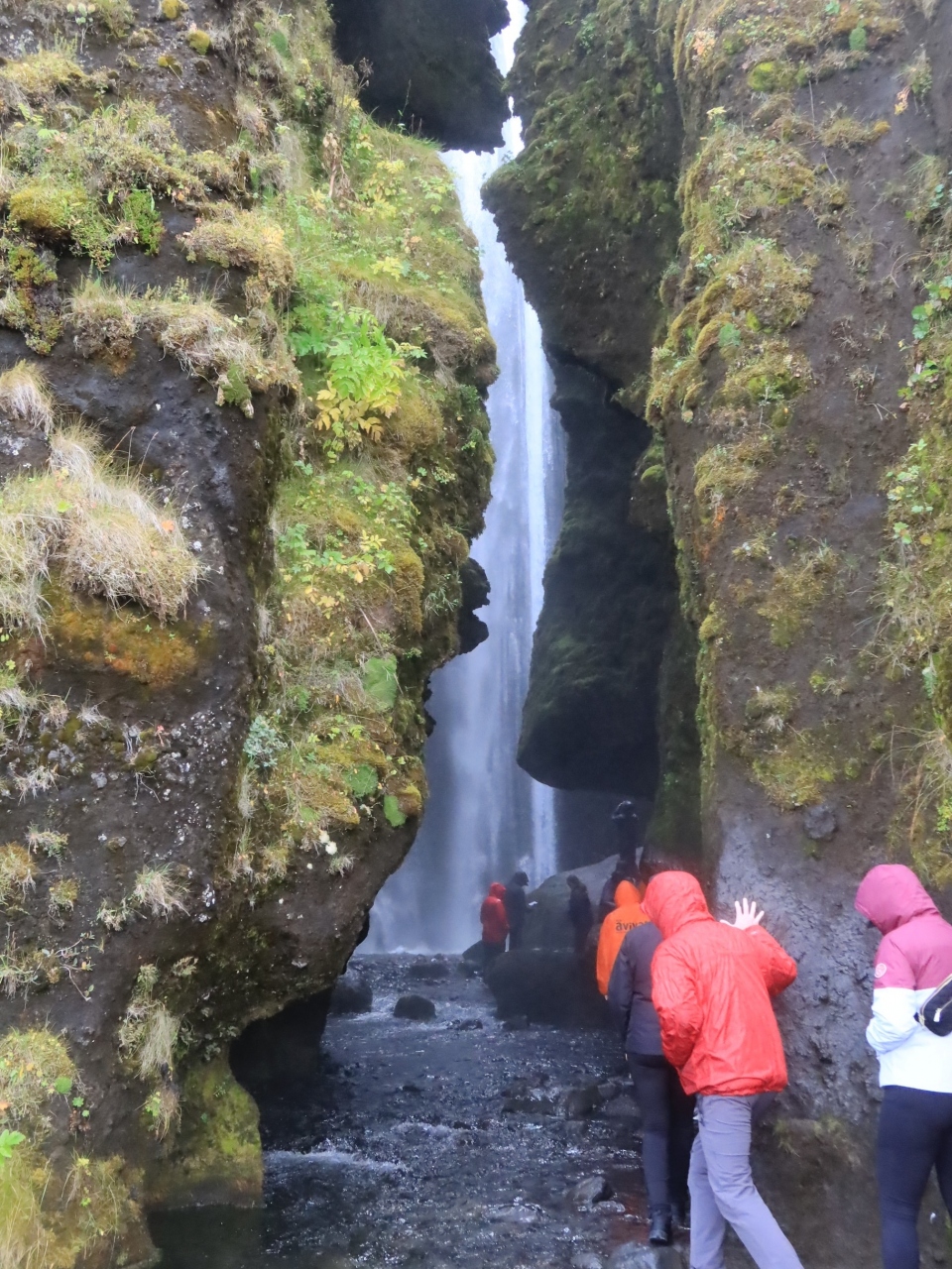 ここもレインコートが必要で、岩の割れ目は滝の水が流れているので石の上をたどって進みます。
