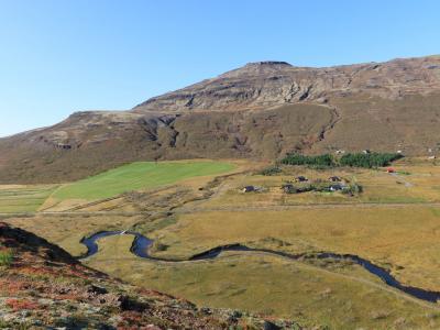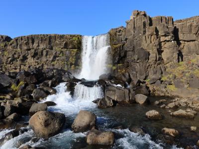 展望台からさらに上流に200~300m進むと、ヘスタヴァスフォス(Hestavaðsfoss)という滝があります。