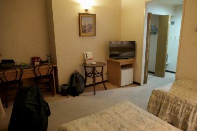 部屋とトイレ・バスルームは標準的なビジネスホテル並みで、可もなく不可もなくといった感じ。