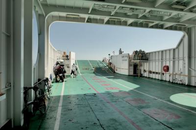 フェリーと旅客船、それぞれ1日4往復程度の便があり、旅客船でも自転車は積めるようです。