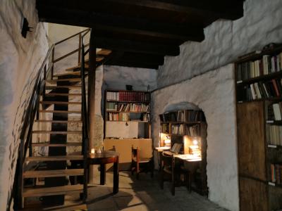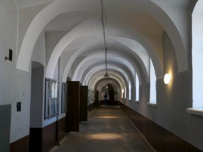 石造りの回廊、講義室、食堂、図書室など、5~6の部屋を見ることができます。