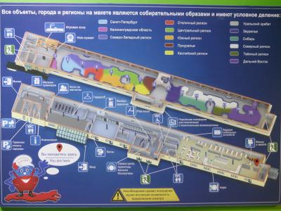 東西に長いフロアを利用して、東側はウラジオストックから中央でウラル山脈が頭上を越えて、西側のサンクトペテルブルクまでひと続きのジオラマとなっています。
