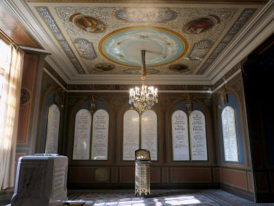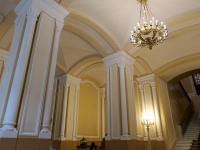 ほかの教会とはひと味ちがう色合いの天井やシャンデリアは、宗教施設というより宮殿に似た感じです。