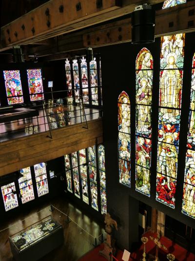 もともと教会に設置されていたものなので宗教的な内容の作品に偏りがちですが、色彩豊かなステンドグラスに囲まれた空間は圧巻です。