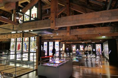 歴史的建造物である旧高橋倉庫の内部に30以上のステンドグラスの作品が展示されています。