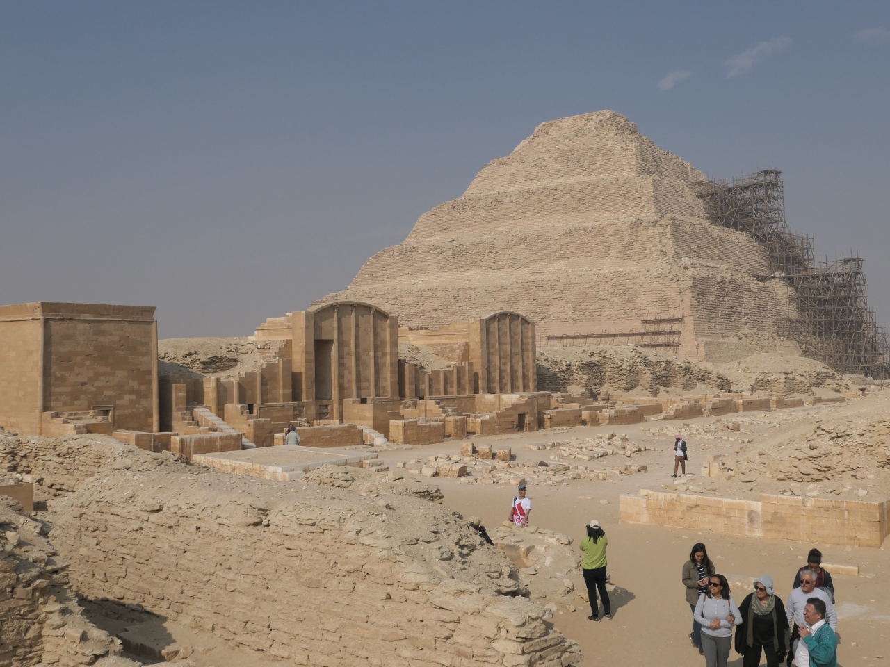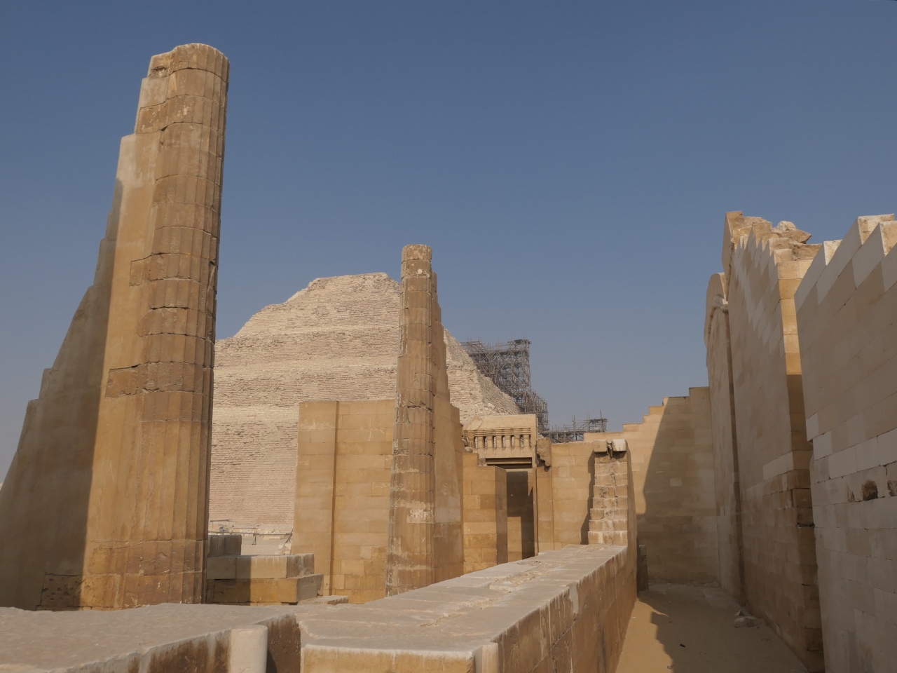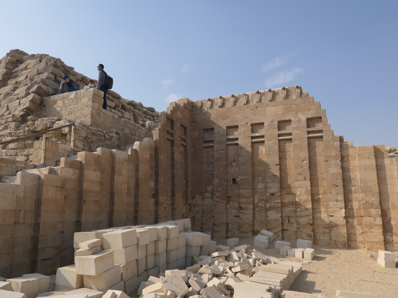 マスタバ墓を6段に重ねた独特の階段ピラミッドの他、複合建築の入口付近の周壁、柱廊、コブラの壁、王宮跡、セド祭の神殿などみどころ豊富です。