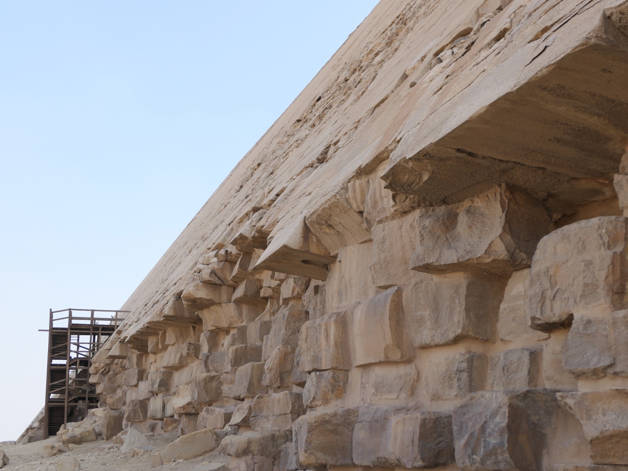 屈折ピラミッドはそのシルエットもさることながら、石材の加工と積み方にも特徴があります。