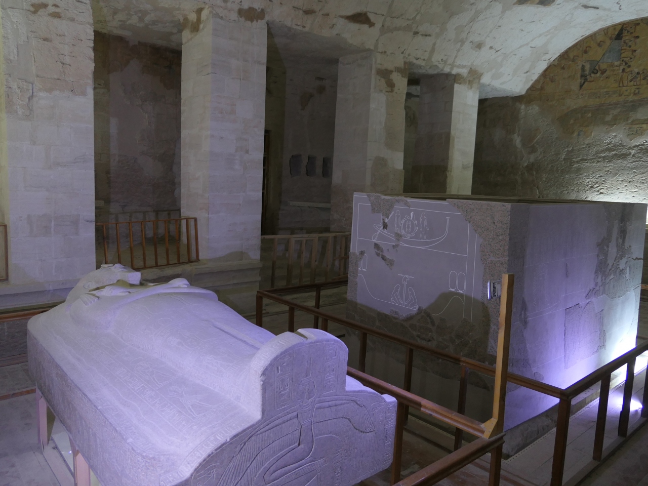 壁画の保存状態はやや落ちるが、人型の石棺も見られる。