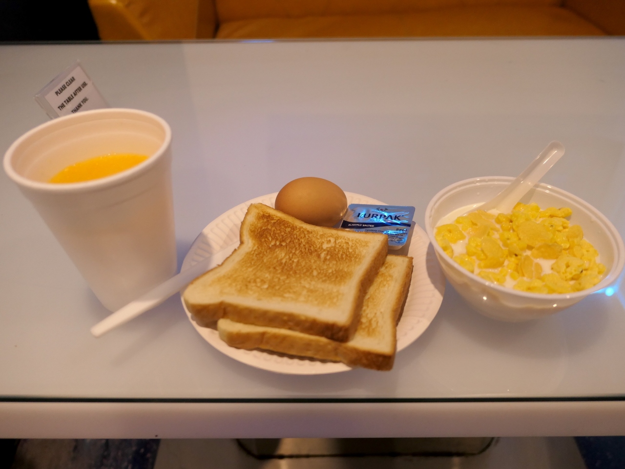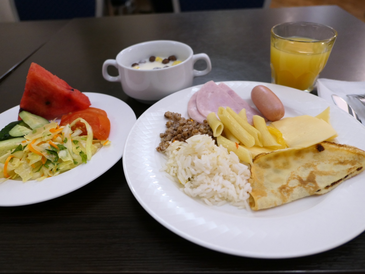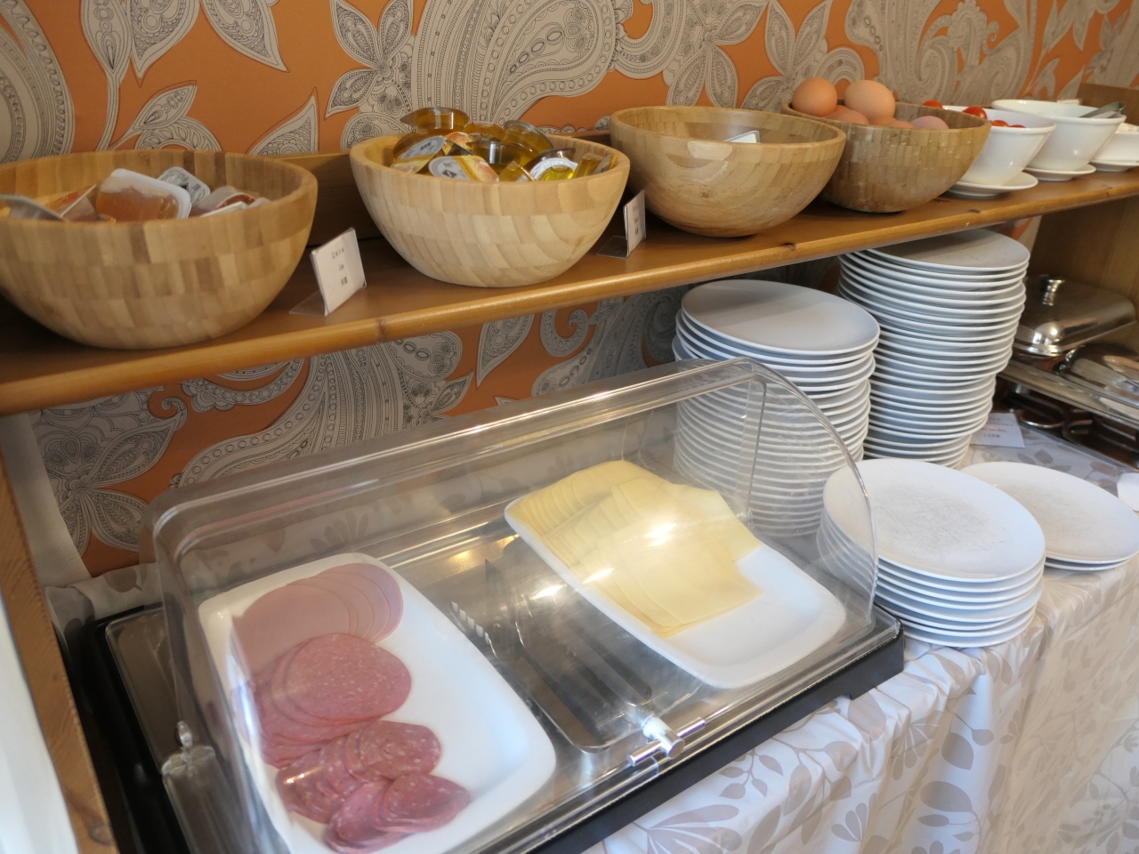 朝食はホットミールもありますが、ベジタブルが少なめです。