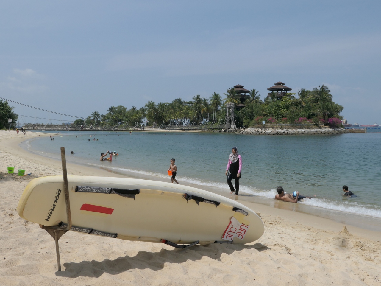 セントーサ・エクスプレスのビーチ駅から徒歩5分以内、シンガポールの中心地から1時間もかからない近さのビーチ。