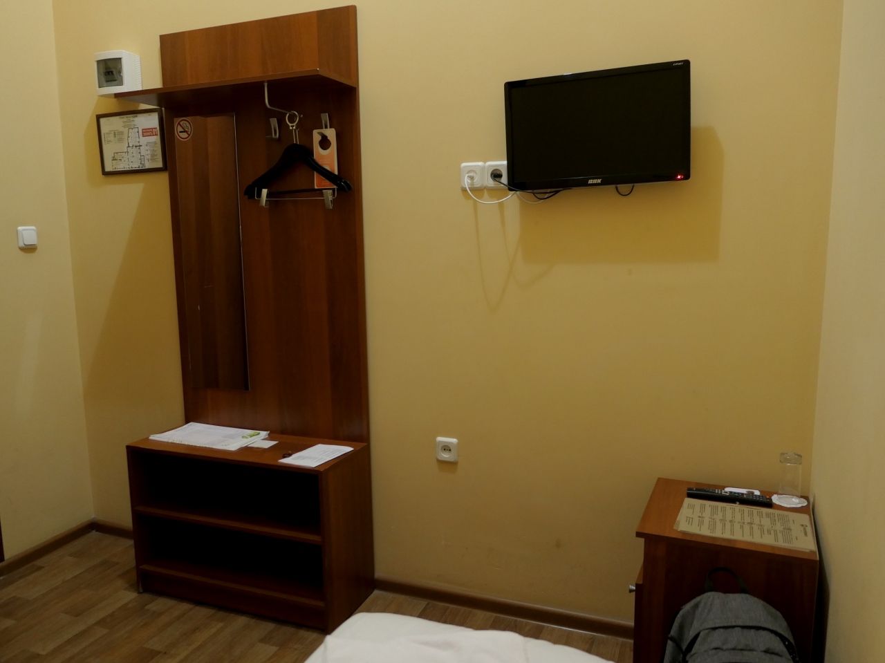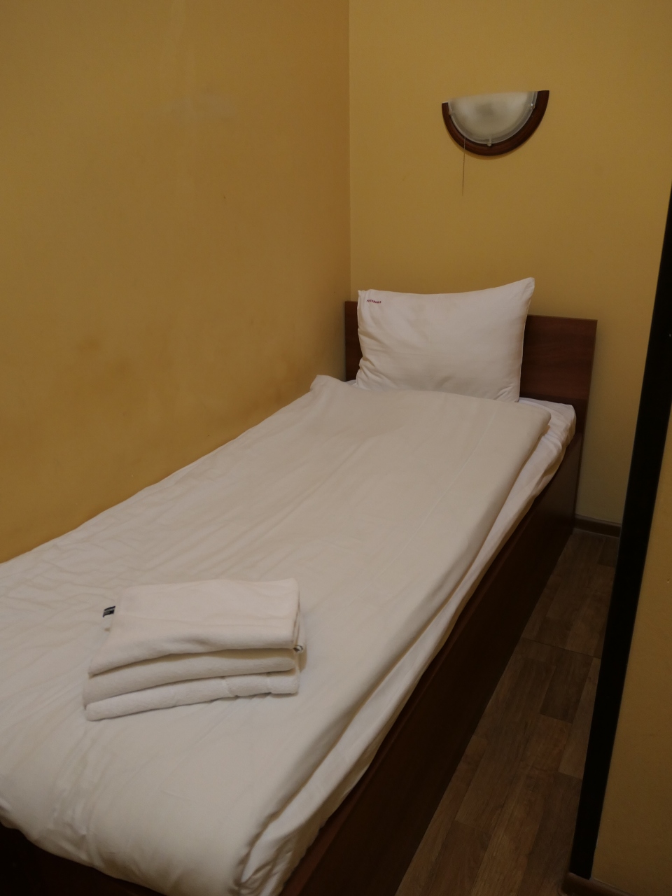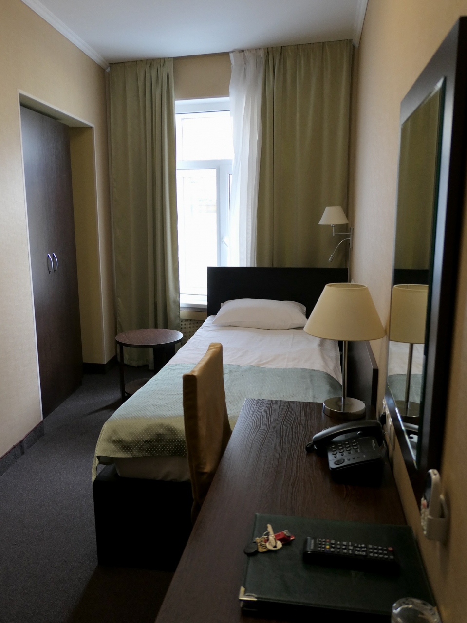 窓なしの狭い部屋でしたが、モスクワの中心地にしてはかなり格安。