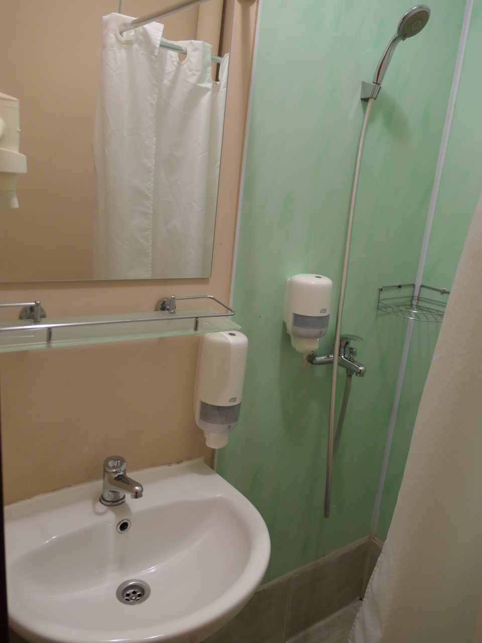 シングルルームはやや狭く細長いですが、洗面、シャワー、トイレが最近改装された感じで清潔感があります。