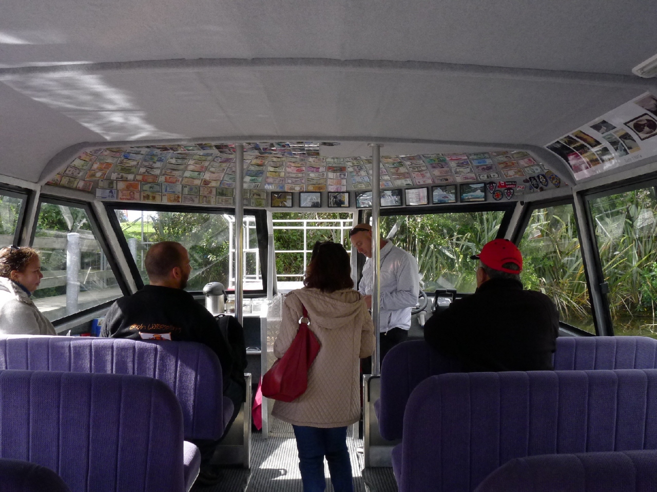 船首と船尾に展望デッキのついた20〜30人乗りくらいのボートで、ゆっくりとワイカト川をさかのぼります。