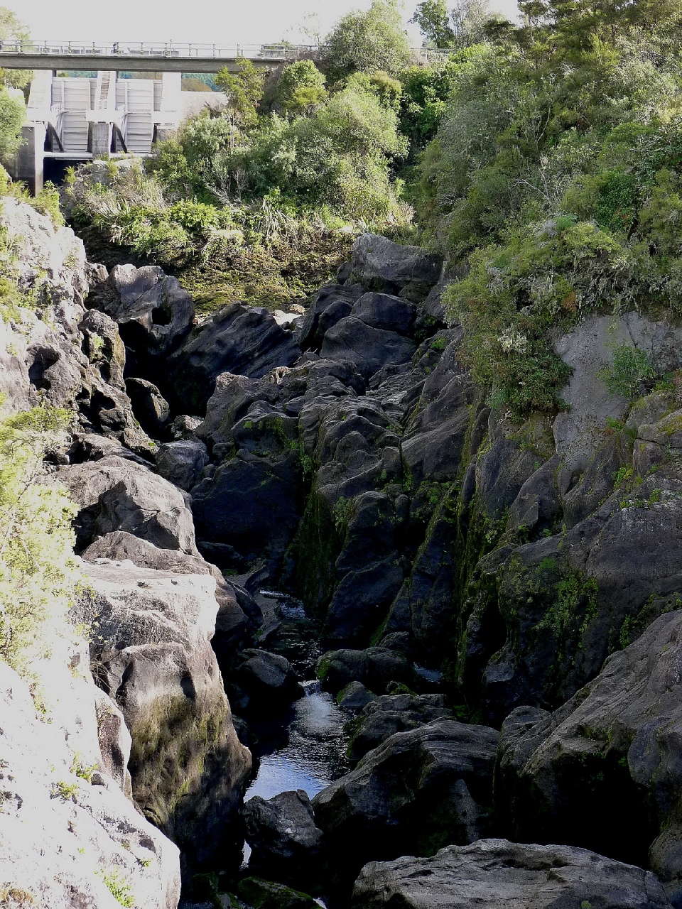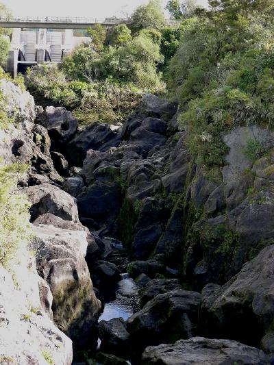 渓谷との高低差が比較的大きくなるので、放流時の激流は少し遠くなります。