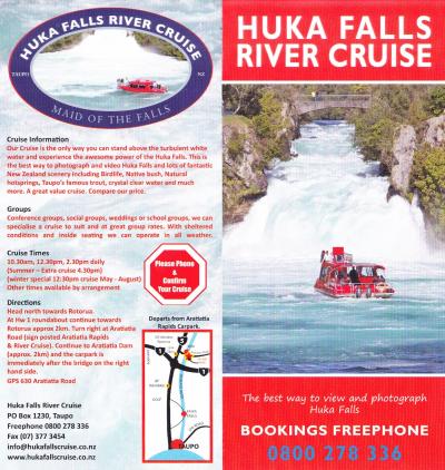 タウポから北に約12kmのアラティアティアから、「フカ・フォール・リバー・クルーズ」が発着しています。