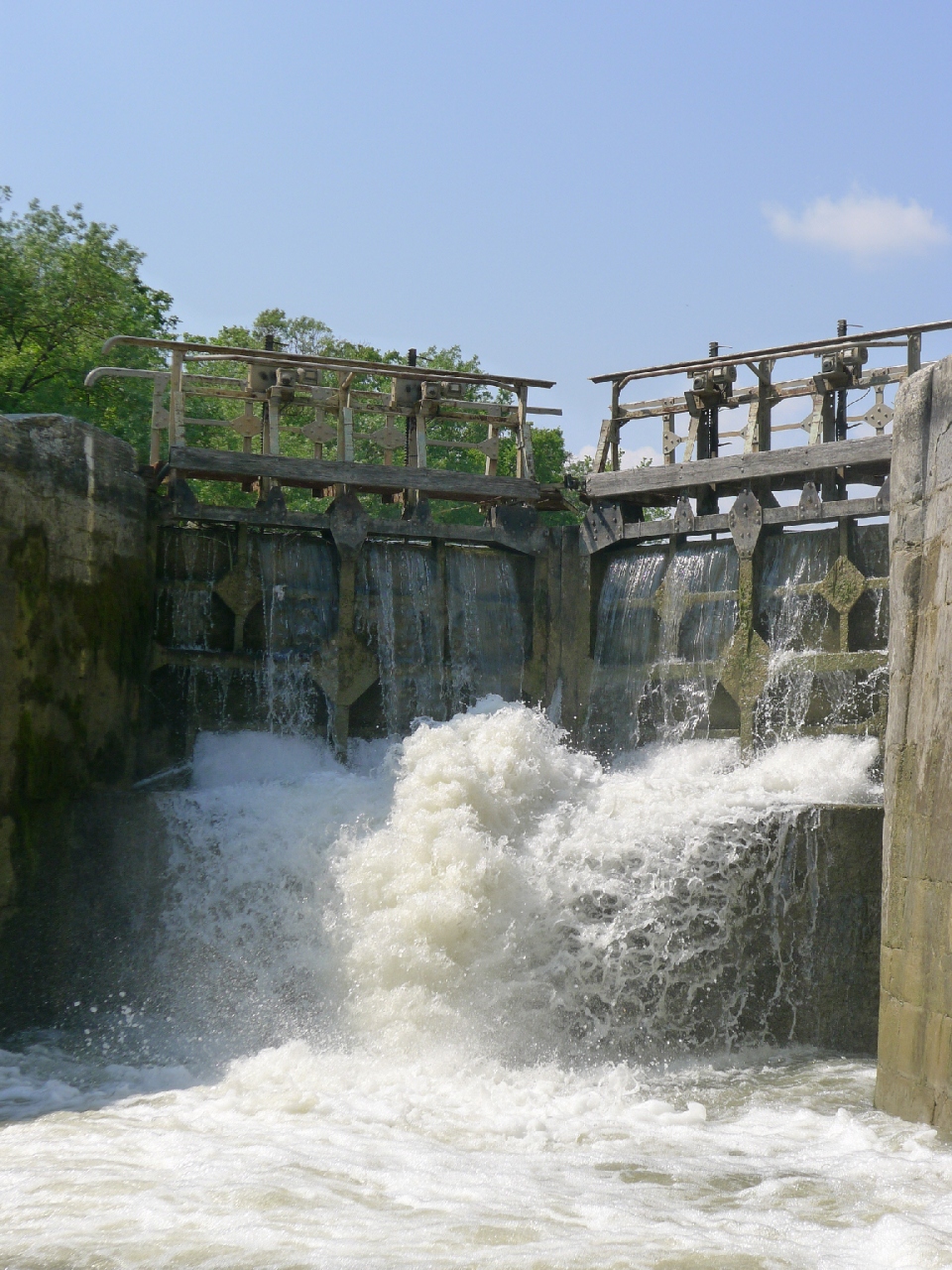 クルーズは単に運河を往復するだけですが、ハイライトは「閘門(こうもん)」と呼ばれる施設で水位を調節する場面です。