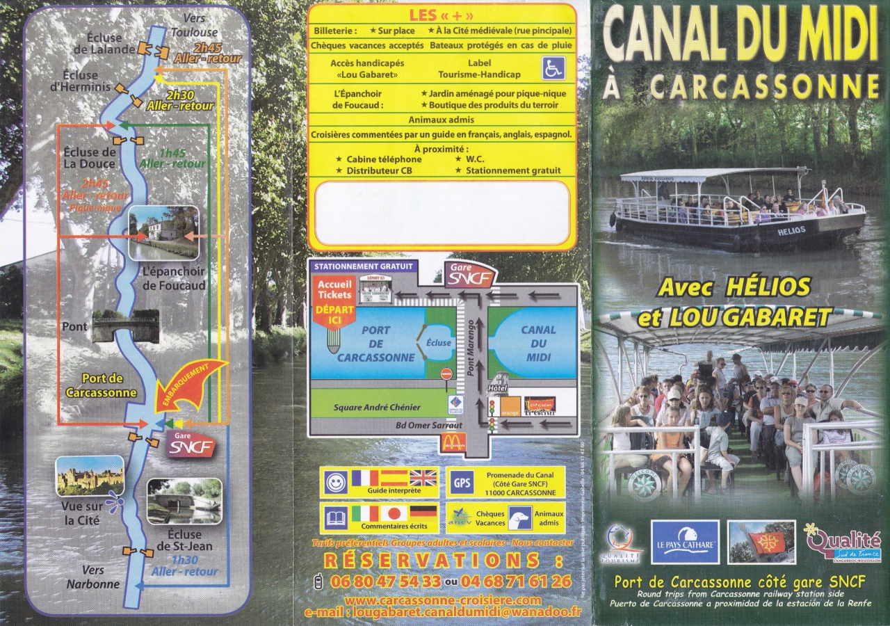 カルカッソンヌから出ているミディ運河クルーズは2~3社あるようですが、私が参加したクルーズは2時間半のもので、10.5ユーロでした。