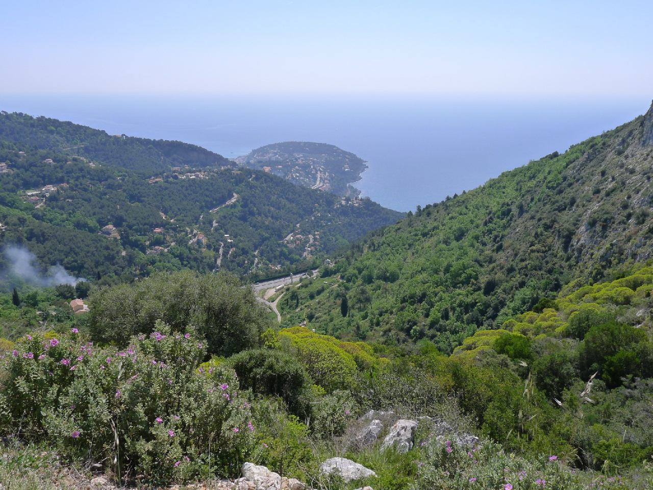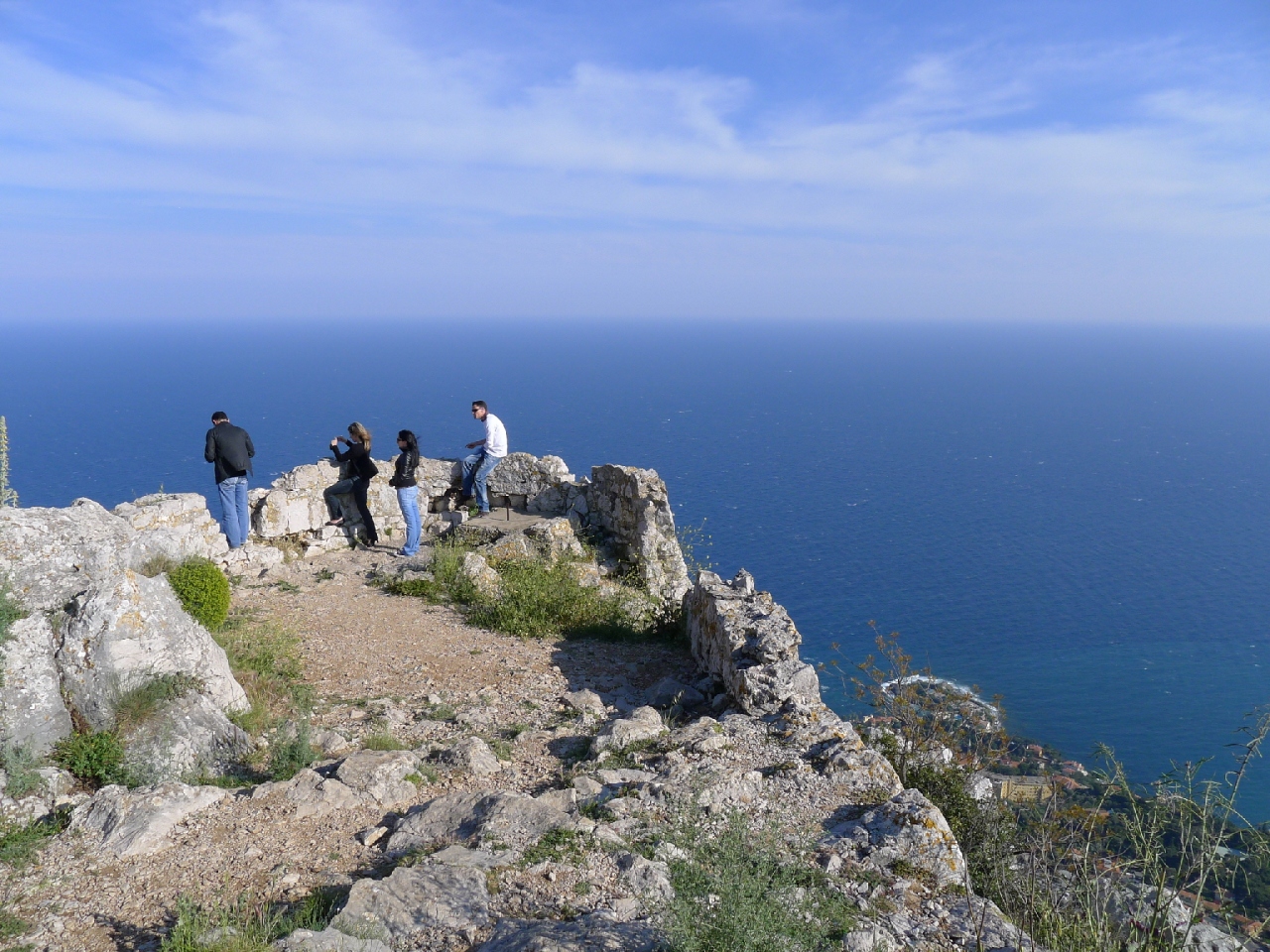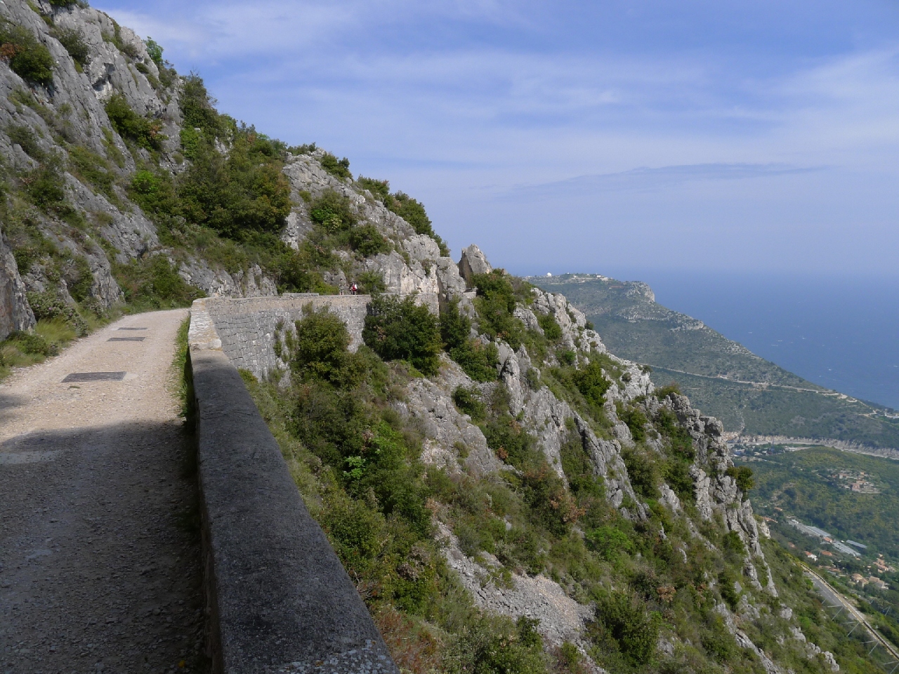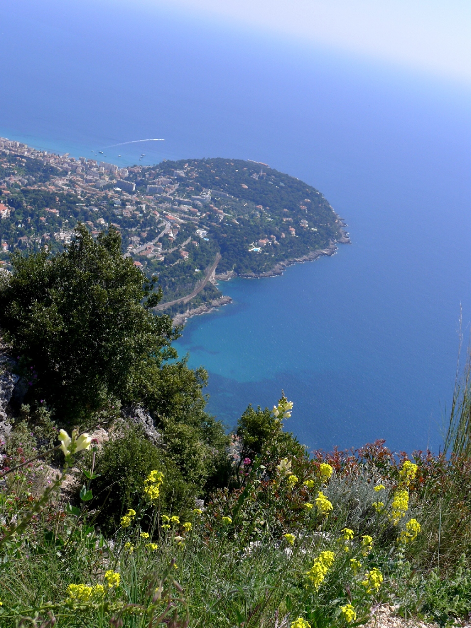 山頂近くに地中海に向かってパラグライダーのテイクオフのバーンがあり、そこからはモナコ方向とロクブリュヌ〜マントン方向共に、地中海を見下ろす絶景が広がっています。