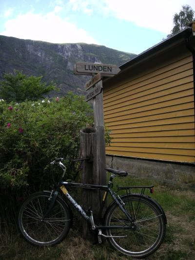 フロムのインフォメーションで自転車を借りることが出来ます。「バイクレント」と表記されています。6~7段ギアの街乗り風のマウンテンバイクで、前かごなし、後ろに荷台あり。荷台なしもあったと思います。1時間50NOK,1日250NOKで好きな自転車を選べます。日本の自転車に比べてやや大きめなので、サドルを下げても高ければ、小さめ(子供用かも)のものを選ぶこともできます。フロム鉄道に80NOK(フロム→ミュールダール)で自転車を載せることが出来るようです。ミュールダールからフロムまで(25kmくらいでほとんど下り)、ハイキングやサイクリングができるようです。このコースの所要時間の目安は、休憩しながらでハイキング約1日、サイクリング約半日でしょう。詳しくはインフォメーションで聞いてみて下さい。ハイキングマップ(無料)も置いてあります。列車からの窓越しの風景だけでなく、ゆっくり移動しながらこの地に身をおいて、じっくり風景を味わうと、色々な発見があり、よりよい旅の思い出になると思います。