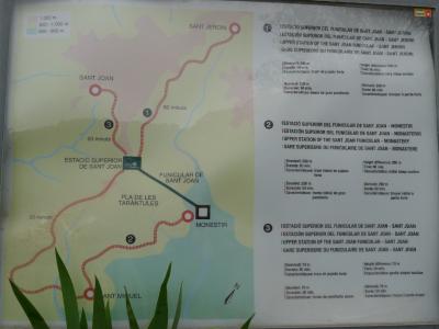 ケーブルカーで「サン・ジュアン」まで上ってきたら、?「サン・ジェロニ(SANT JERONI)」まで行くコース、?モンセラットまで下りて行くコース、?「サン・ジャアン(SANT JOAN)」に行くコースの主に3つのハイキングコースが出ています。