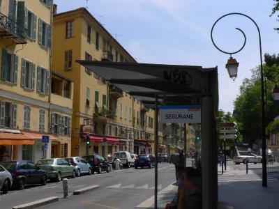 現地で確認できたバス停は、ガリバルディ広場(Place Galibardi)からカトリーヌ・セギュアーヌ通り(Rue Catherine Segrane)を南東に約100mのところにある「セギュアーヌ(SEGURANE)」というバス停。