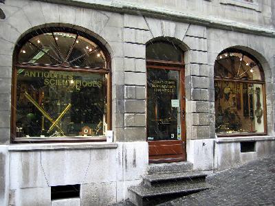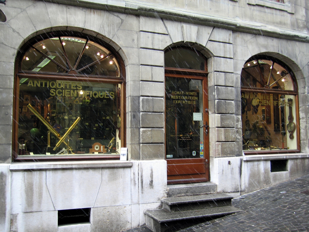 旧市街のサンピエールの正面からMoraldに下りてくる階段(実はこの階段の途中から、年に1回、エスカラードの時だけ通れる城壁の通路があります)の途中に、科学機材の骨董屋さんがあります。望遠鏡や顕微鏡、秤など。理科系の人はちょっと興味をそそられます。