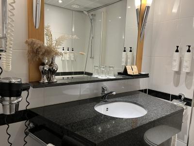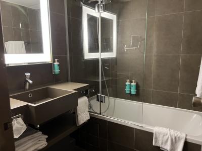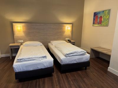 ブリュッセル中央駅は石畳が多くスーツケースで移動するのは大変ですが、駅から徒歩2分の近さ。行きは下り坂なので簡単に行けます。激しい凸凹に入る前にホテルのフロントに着き、逆を言えばノボテルを過ぎると石畳の凸凹が激しくなります。部屋は静かなバスタブ付きの部屋をリクエスト、期待通りで快適な滞在。バスルームの排水、水圧問題なし。トイレ独立タイプで快適。部屋は清潔で広くベッドの寝心地が良かったです。ポット、冷蔵庫、水、セキュリティボックス有り。オンラインチェックイン可。朝食はオレンジ絞りマシーンがありオレンジジュースがとても美味しかったです。自分でワッフルを焼いたりして楽しい。