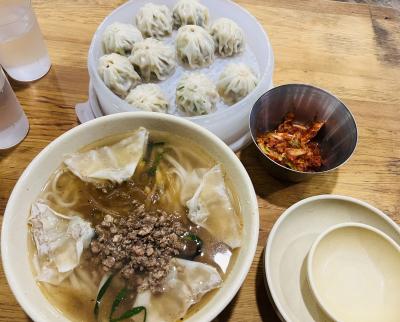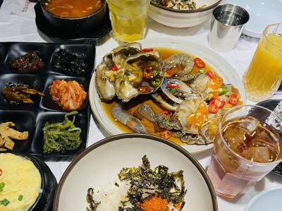 お店は地下にあり、15分ほど並び回転は早いです。狭い店内は日本人観光客で賑わっていました。お店の看板メニューのアワビがたくさん入ったお粥を注文しました。期待していた味ではありません。アワビがたくさん乗っていますが、お粥の味にアワビの出汁が全然出てない。味は普通の薄味粥です。イカのキムチは美味しかった。2人で4800w、5,500円です。日本円で六千円渡したら500円玉のお釣り。日本のコインでのお釣りに驚きました。支払いは現金のみ。店員さんは親切でした。