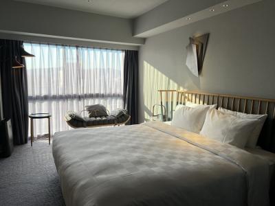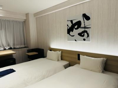 ダブルの部屋を1人利用しました。部屋は清潔で居心地の良いインテリアです。8階の部屋からは西本願寺が見えて和みました。バスルームはシャワーのみでしたがヘッドで水圧を調節したりできます。流れも問題なし。ポット、セーフティボックス、冷蔵庫、無料のお水が2本あります。歯ブラシもありますが使ってません。たぶん大きめサイズなので気になる人はマイ歯ブラシ持参がオススメです。スリッパもあります。翌日は早朝チェックアウトでほぼ寝るだけでしたがベッドの寝心地もよく静かで快適でした。