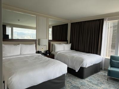 空港からのアクセスが良くてどこへ行くにも便利な立地です。大人3名利用しましたがダブルベット2台で部屋は広くて快適、多少古さを感じましたが清潔でした。マイナス面はアメニティが2人分しか用意されてなかった。電話したら持ってきてくれましたが翌日も同じ事を繰り返すはめになりました。イースターで料金高騰、3人分の料金を支払っていたのに残念でした。ハーバービューに宿泊で開放感抜群、シンフォニーオブライツを部屋から楽しめます。景色がきれいでした。ホテルの下は商業施設なので買い物や飲食店がたくさん入っていて便利でした。