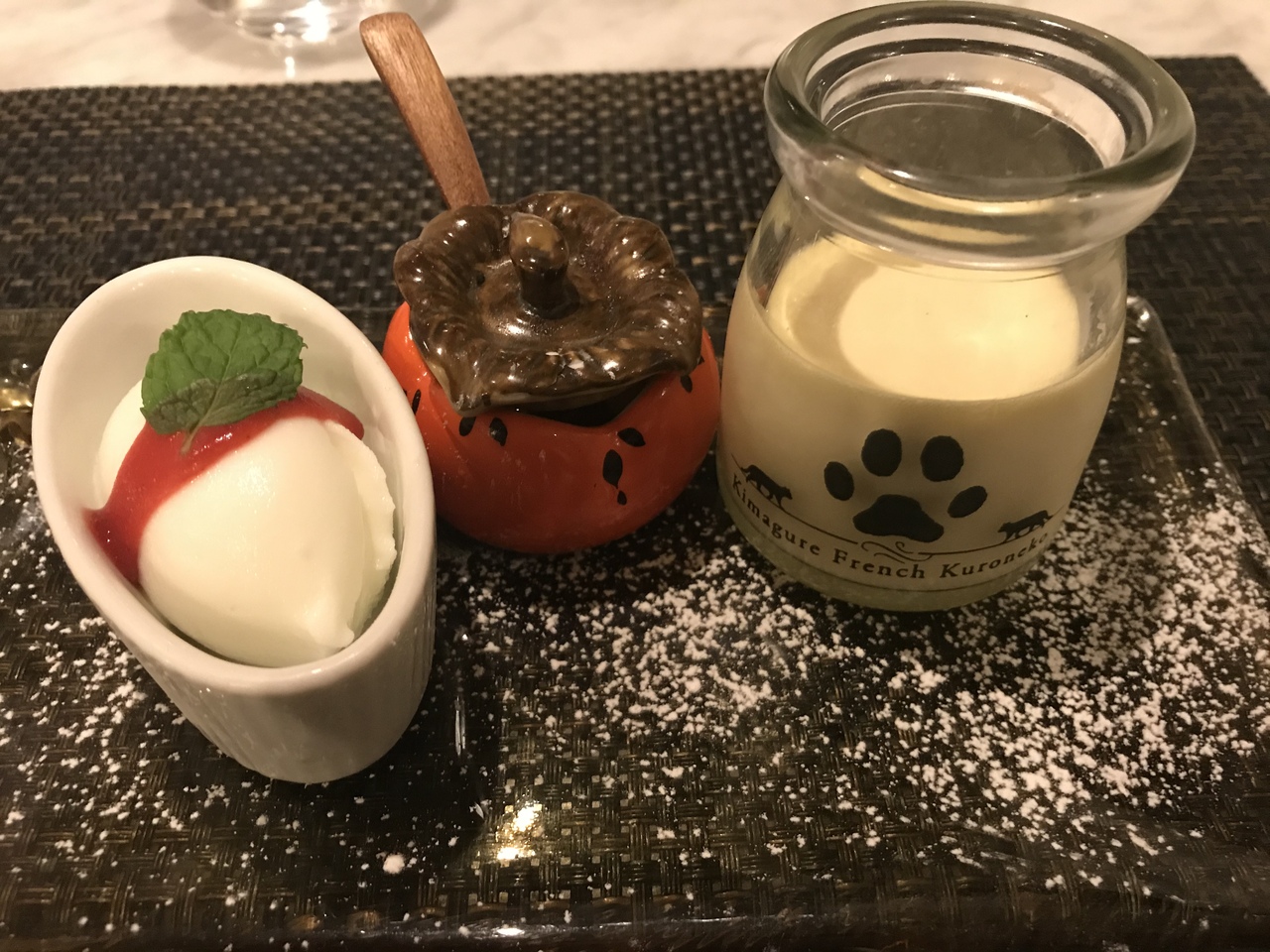 店内は狭いです。黒猫の飾りが随所にあり楽しめます(笑)お料理は芸が細かくて味覚と視覚の両方で楽しめます。メインの鴨肉は少し臭みがあり残念でしたがデザートのプリンが美味しかったです。