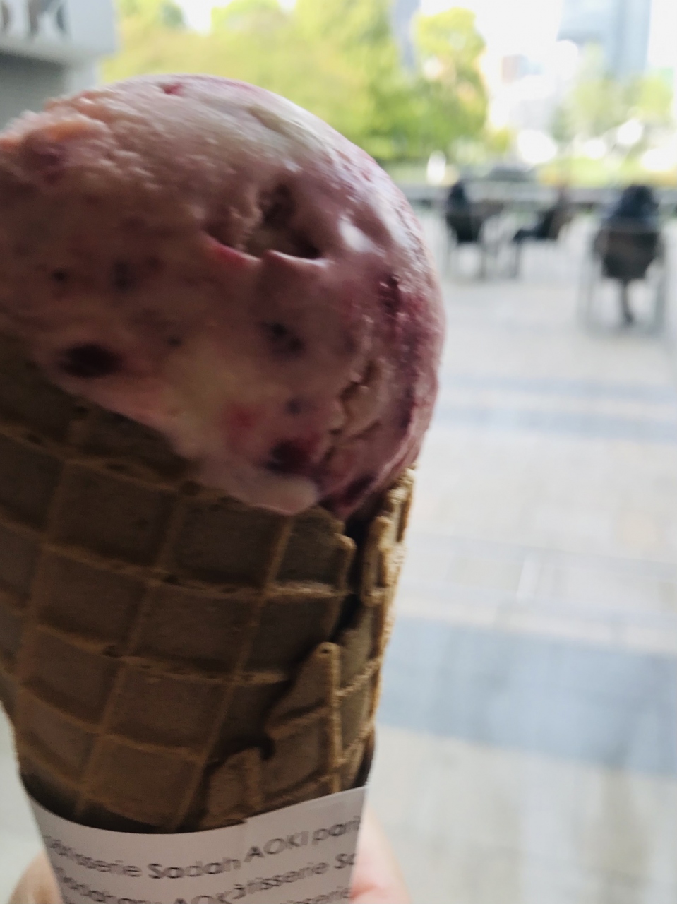パリに行けないから雰囲気だけでもと思いケーキをテイクアウト。バンブーやピスタチオ、チーズケーキを購入。ふとアイスを食べたくて追加でオーダーした。席が空いてるから座って食べたいと伝えたらワンドリンク制だと言われた。アイスにドリンク注文を強要されるのには驚いた。他にも購入してるんだから5分くらい座って食べるの許容して欲しい。鉄板焼きのフルコースの後でさっきカプチーノ飲んだばかり。パリのサダハルアオキはサービス精神旺盛なのに日本は…と感じた。せめて、オーダーする前に教えて欲しい。