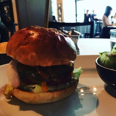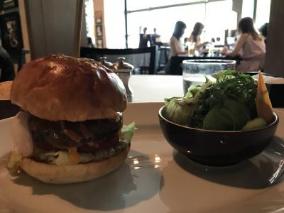 夕方から大事な仕事の打ち合わせに備えパワーランチをしたい。ハンバーガーが食べたくて予約なしで入りました。肉汁たっぷりのハンバーグは香ばしくボリュームあります。お腹が空いていたけれど食べきれなかった。付け合わせはポテトかサラダを選べます。シーザーサラダが前菜なので、ポテトでも良かった。男性でもお腹いっぱいになる量です。付け合わせのパンが美味しいので食べ過ぎ注意です。ふわふわで美味しい、発酵のさせかたを工夫してるそうです。サワーブレッドはフィオレンティーナで購入できます。