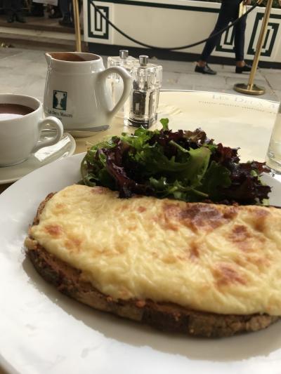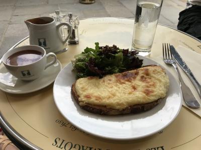遅いランチでクロックムッシュとショコラショーを注文しました。暑かったのでフルーツ盛り合わせとアイスティーにしようか迷いましたが前回の美味しい記憶から同じものにしました。