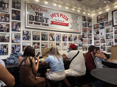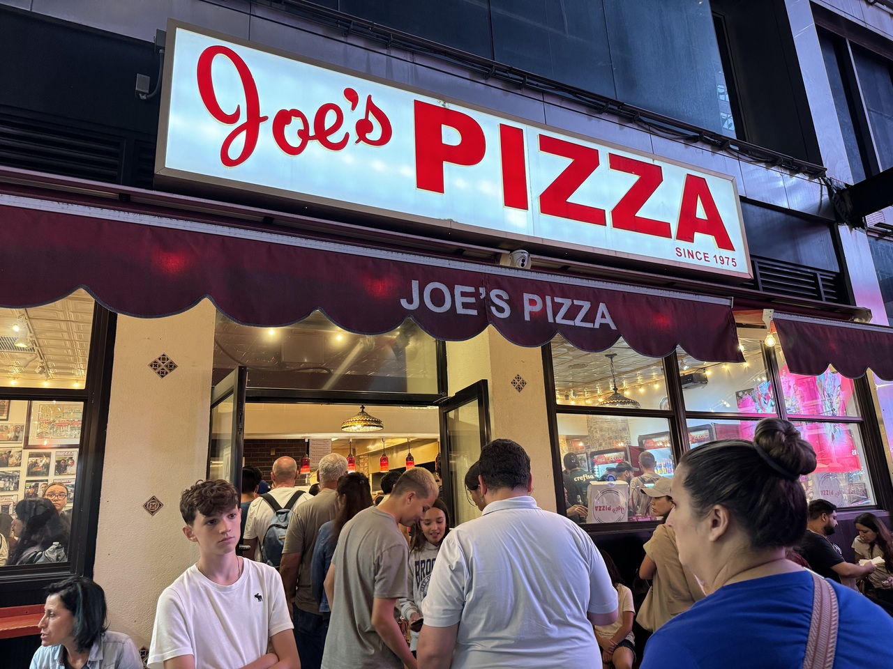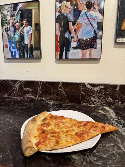 21時半に小腹が空いて訪問。人気店で行列でしたが回転が早く20分後にはオーダーできました。シンプルなチーズピザは生地柔らかめで美味しかったです。大きいので一切れでお腹いっぱいになりました。4.5ドルでした。テーブルに粉チーズが置いてあるので追いチーズしてる人が一定数いました。並ぶけれど気軽に入れて安くて美味しいお店です。